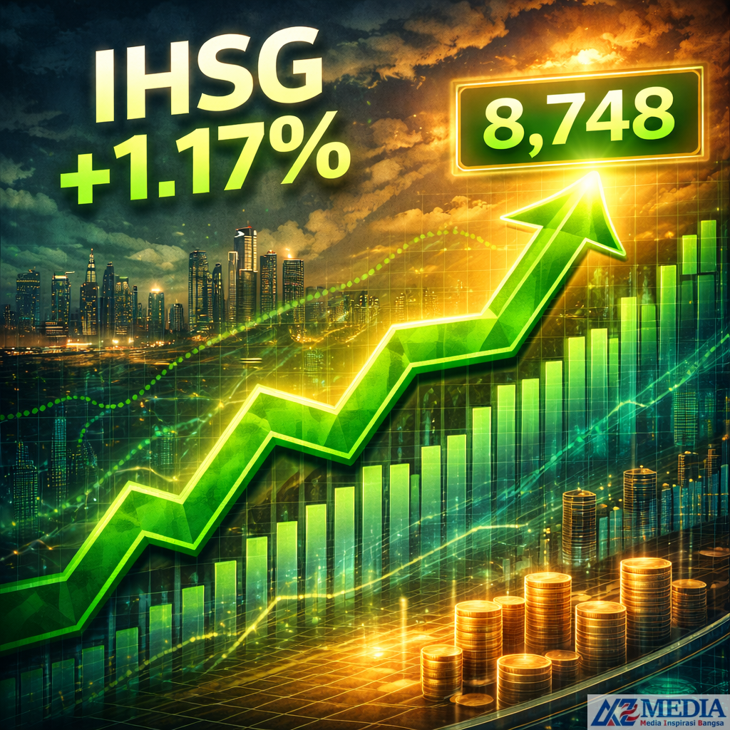 AZMEDIA — Indeks Harga Saham Gabungan (IHSG) mengakhiri perdagangan Jumat (2/1) dengan kinerja positif dan ditutup di level 8.748. Pada penutupan sesi, indeks utama pasar saham domestik tersebut tercatat menguat 101,19 poin, atau setara dengan kenaikan 1,17 persen dibandingkan dengan posisi penutupan sebelumnya.