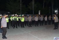 AZMEDIA Nganjuk Kapolres Nganjuk AKBP Muhammad, S.H., S.I.K., M.Si., menyiapkan puluhan anggotanya dalam Tim Patroli Gabungan Skala Besar untuk mengamankan kegiatan masyarakat dalam rangka…