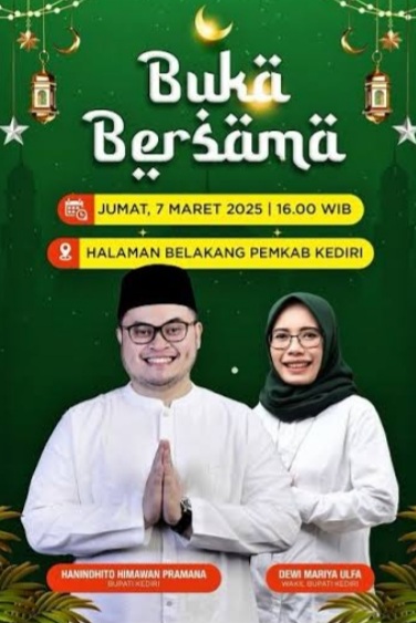 Kediri AZmedia.co.id (bukber)Buka bersama warga Kabupaten Kediri, Bupati Hanindhito Himawan Pramana dan Dewi Mariya Ulfa secara khusus menyiapkan 12.000 nasi kotak. Acara ini dihadiri ribuan warga dari semua lapisan masyarakat ,acara tersebut digelar di Halaman belakang Kantor Pemerintah Kabupaten Kediri pada Jumat (07/03).