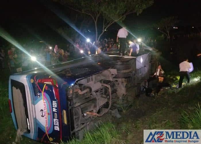 Tulungagung,AZMEDIA.CO.ID-Bus pariwisata yang mengangkut rombongan siswa dan guru dari SMAN 1 Sidoarjo mengalami kecelakaan di ruas jalan Tol Ngawi-Solo, Desa Ngale, Kecamatan Paron, Kabupaten Ngawi, Jawa Timur sehingga mengakibatkan satu orang meninggal dunia dan sejumlah lainnya luka-luka.