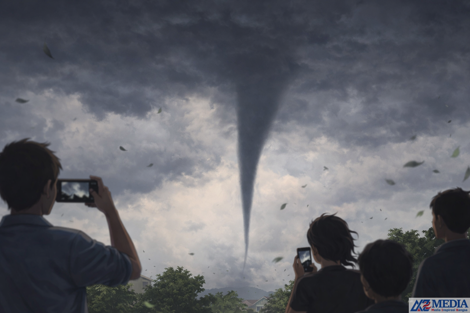 AZMEDIA – Fenomena angin puting beliung yang muncul di langit Kecamatan Ngunut, Tulungagung, mendadak menyita perhatian publik setelah rekamannya beredar luas di media sosial. Dalam video yang viral tersebut, tampak awan gelap membentuk pusaran menyerupai ekor memanjang dan berputar di udara, memicu kepanikan warga yang menyaksikannya secara langsung.
