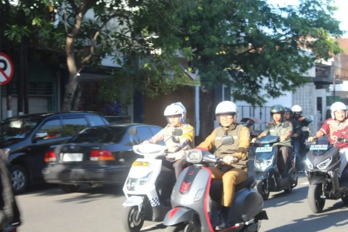 Forkopimda Tulungagung Patroli Gunakan Motor Listrik dan Bagi Takjil.
