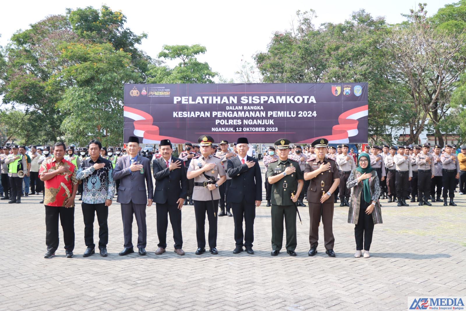 Nganjuk – Menjelang penyelenggaraan Tahapan Pemilu serentak tahun 2024 mendatang, Polres Nganjuk menggelar simulasi Sistem Pengamanan Kota (Sispamkota) di Halaman GOR Bung Karno Begadung , Kamis (12/10/2023).