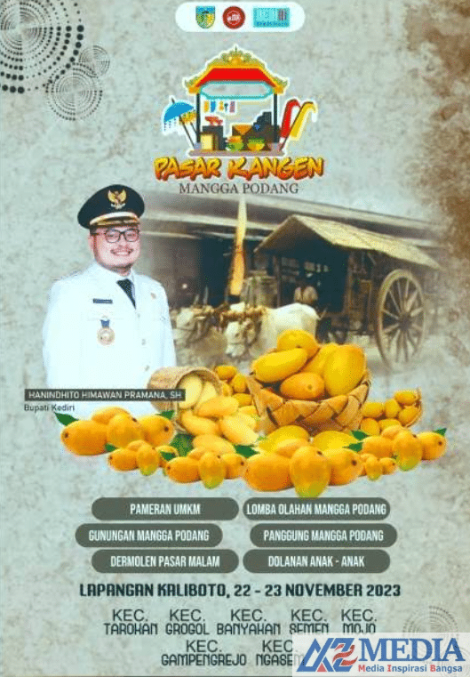 AZmedia.co.id KEDIRI Pemerintah Kabupaten Kediri melalui Dinas Koperasi dan Usaha Mikro menggelar Pasar Kangen Mangga Podang. Bertempat di Lapangan Desa Kaliboto Kecamatan Tarokan, Rabu Pagi (22/11/2023).