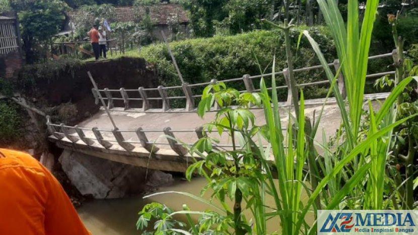 Jembatan dengan ukuran panjang 15 meter dan lebar 2 meter itu putus akibat tidak mampu menahan derasnya aliran sungai yang mengalir.