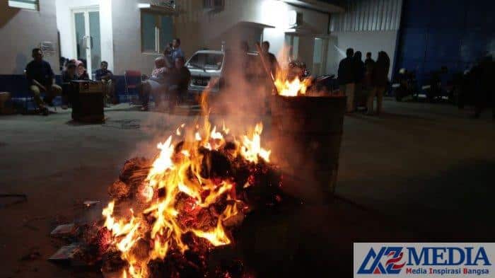 obaran api yang membakar kertas suara yang rusak dan sisa di gudang KPU KPU Tulungagung Bakar Ribuan Surat Suara Pemilu 2024
