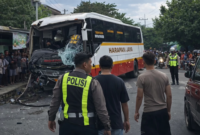 AZMEDIA— Kecelakaan beruntun yang melibatkan Bus Harapan Jaya terjadi di Simpang Empat Muning, kawasan Mojoroto, Kota Kediri, pada Jumat (23/1/2026) sekitar pukul 16.17 WIB….