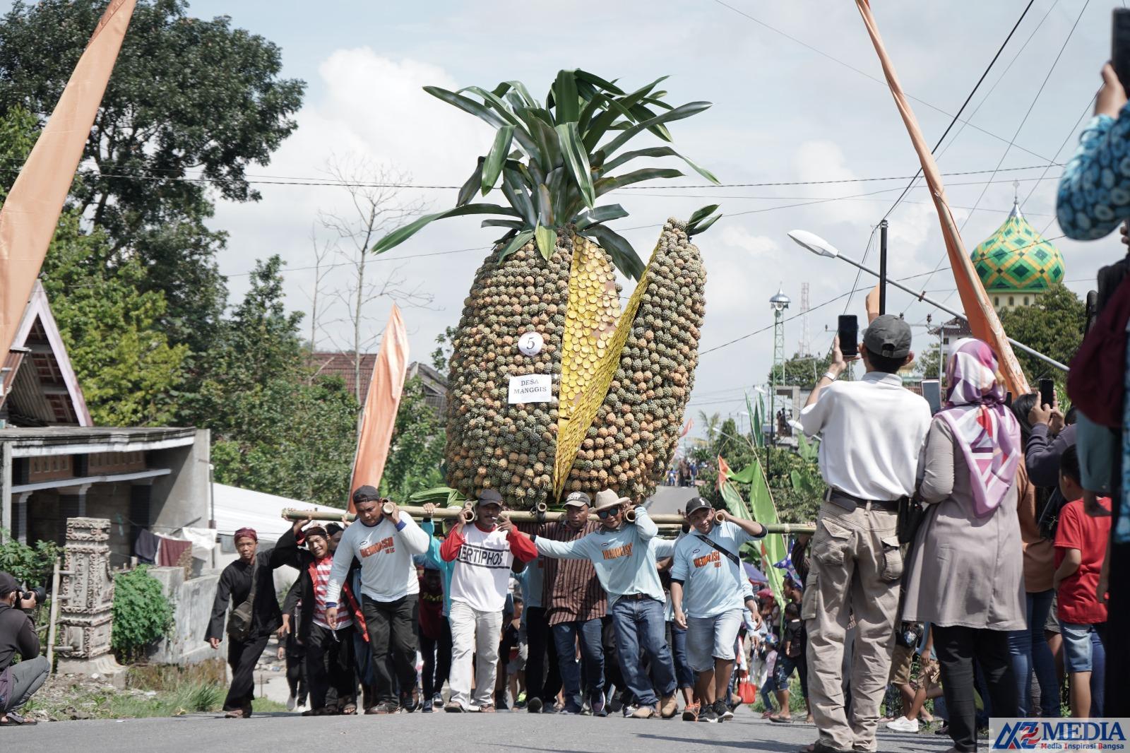 Arakan tumpeng nanas cukup unik, ada yang menyerupai buah nanas raksasa, miniatur Simpang Lima Gumul ada pula yang menyerupai kambing etawa serta masih banyak lagi.