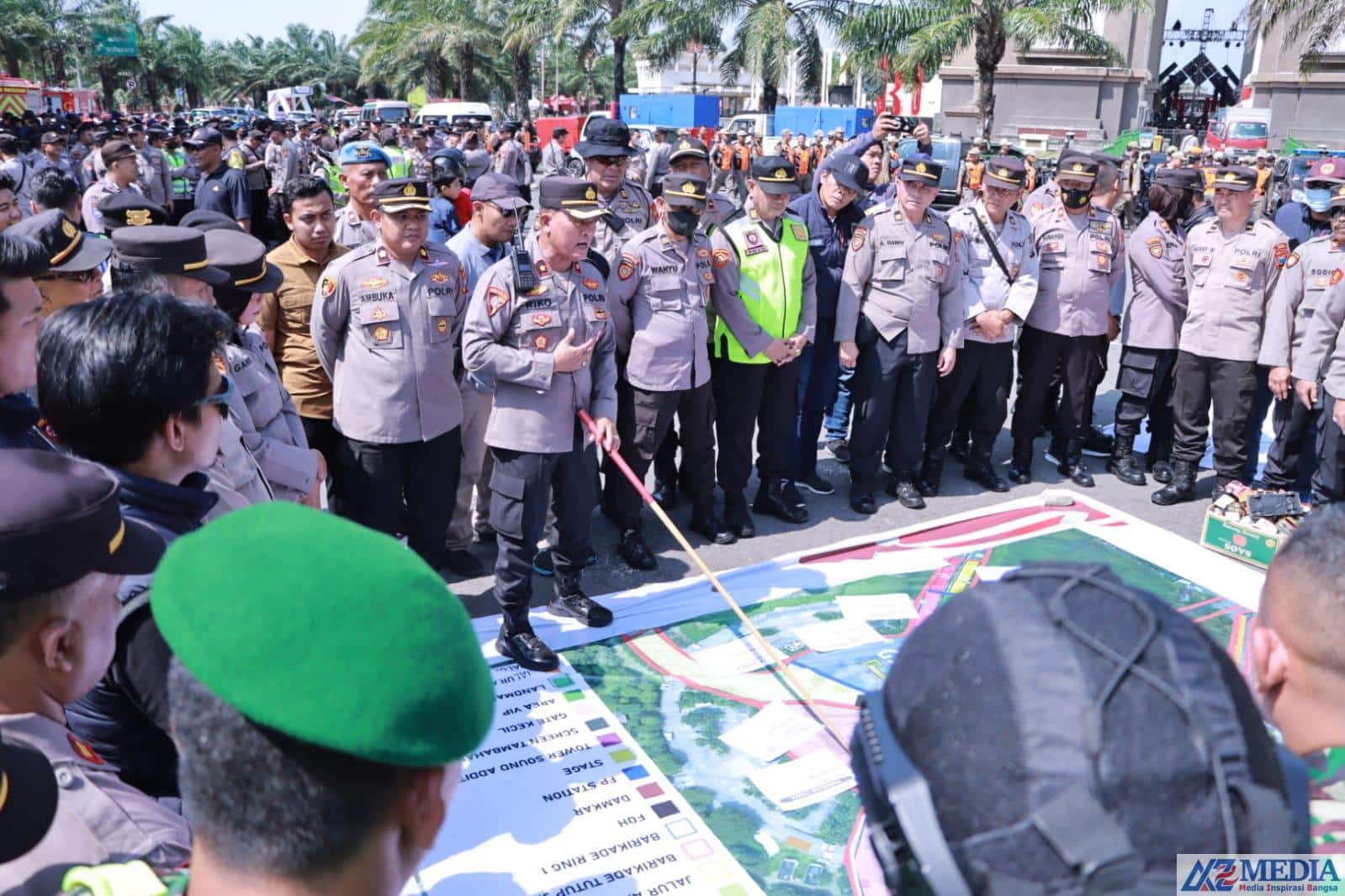 “Personel tersebut akan dibagi dalam beberapa ploting dan tugas, yakni pam area penonton, panggung konser, pintu keluar dan masuk, pam tertutup, pam tenda VIP, Tim Gakkum dan unsur pendukung pam, yang sudah sesuai dalam Tactical Floor Game (TFG),” ungkap Kompol Ambuka.
