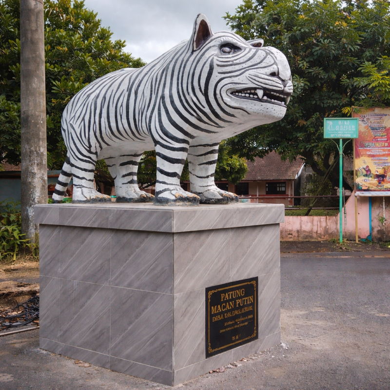 AZMEDIA — Kehadiran Patung Macan Putih di Desa Balongjeruk, Kecamatan Kunjang, membawa dampak ekonomi yang tidak terduga. Di sekitar kawasan tersebut, warga mulai memanfaatkan meningkatnya arus kunjungan dengan membuka lapak penjualan aneka cendera mata bertema macan putih.