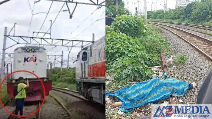 Remaja berbaju kuning tersebut tengah menghadap salah satu kereta. Ia terlihat seperti tak sadar bahwa di belakangnya ada Kereta Brantas yang melintas ke arahnya sehingga ia pun tertabrak.