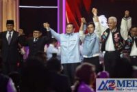 Tulungagung,AZMEDIA.CO.ID-Capres nomor urut 2 Prabowo Subianto (tengah) menyampaikan pandangannya disaksikan Capres nomor urut 1 Anies Baswedan (kiri) dan Capres nomor urut 3 Ganjar Pranowo…