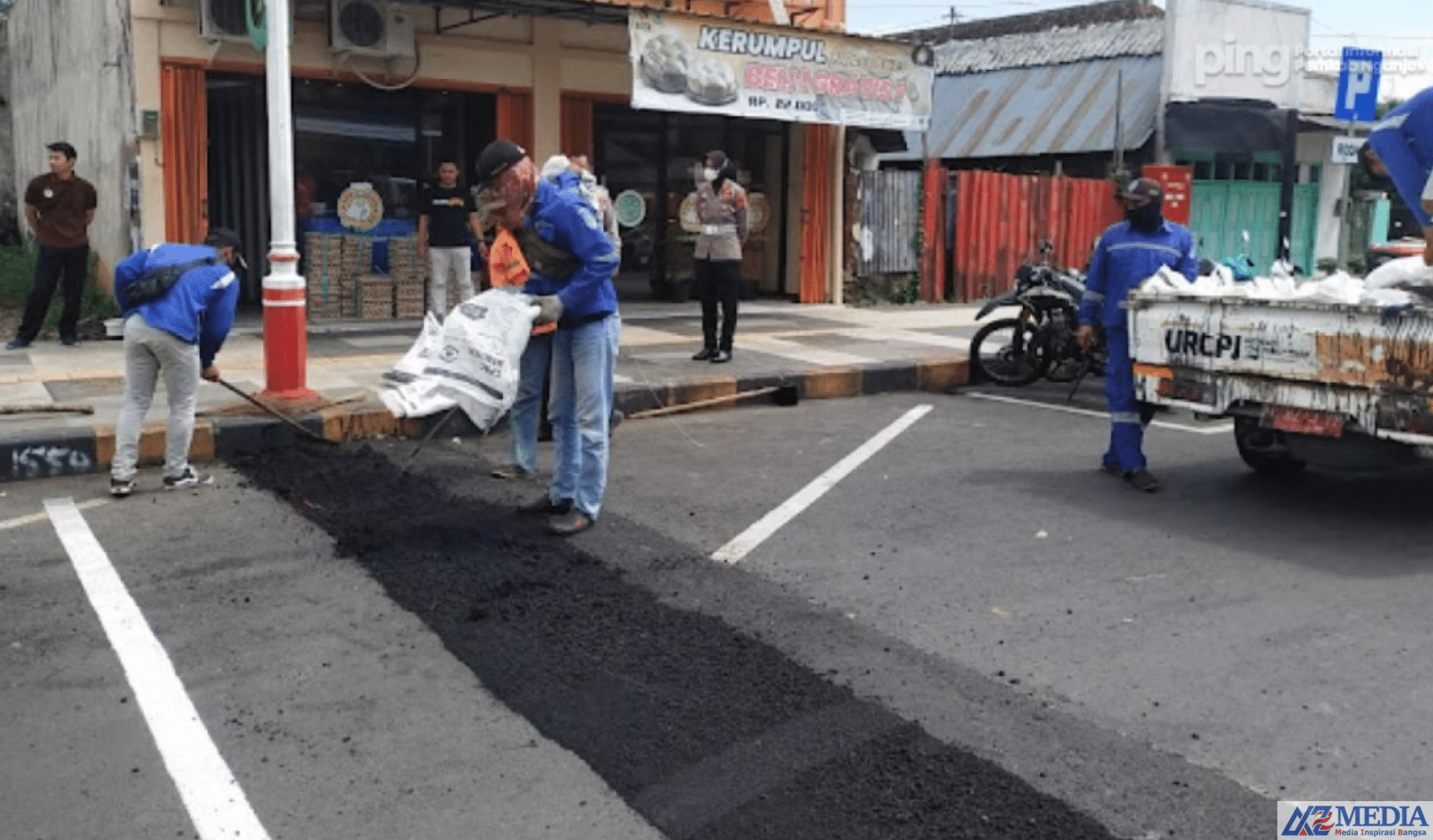 Nganjuk.AZmedia.co.id .Tertibkan Pengendara, Dishub Nganjuk Pasang Marka Kejut di Jalan A Yani